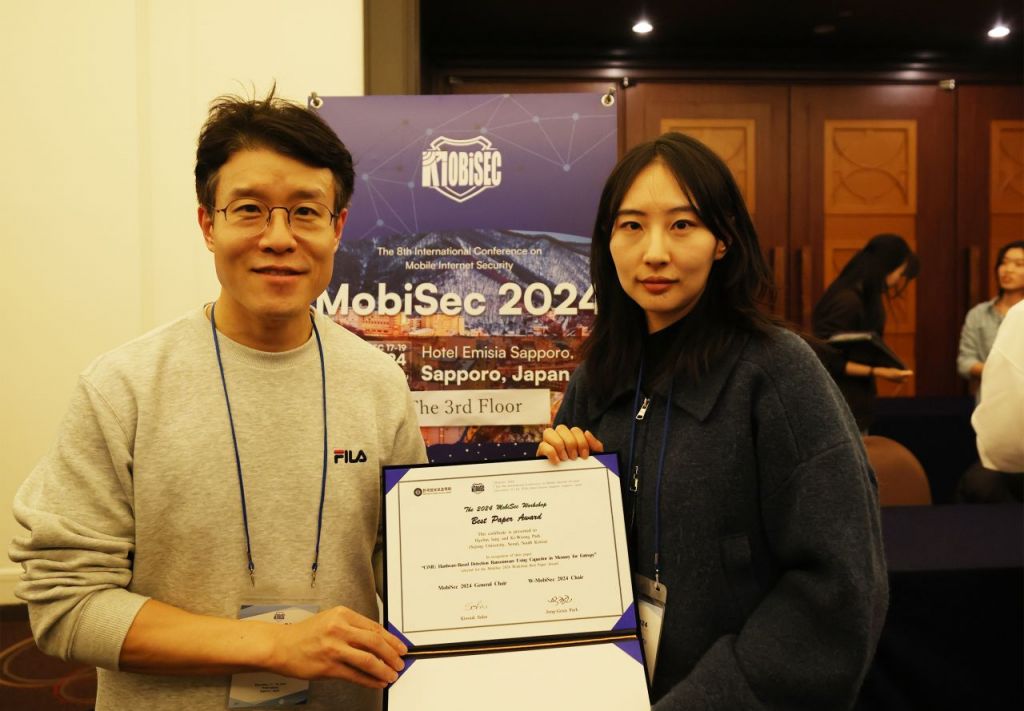 세종대는 박 교수 연구팀이 지난달 17일부터 이틀간 일본에서 제8회 모바일 인터넷 보안 국제심포지엄 워크숍(MobiSEc 2024)에서 최우수 논문상을 수상했다고 11일 밝혔다.