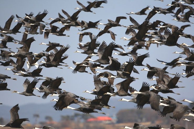 충남 서산 천수만에서 지난해 3월 촬영된 흑두루미 군무. /서산시