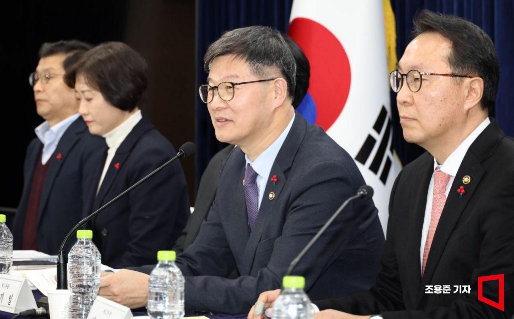 이기일 보건복지부 1차관(오른쪽두번째), 박민수 2차관(오른쪽)이 지난 8일 서울 종로구 정부서울청사에서 복지부 2025년 주요업무보고 사전 브리핑을 하고 있다.