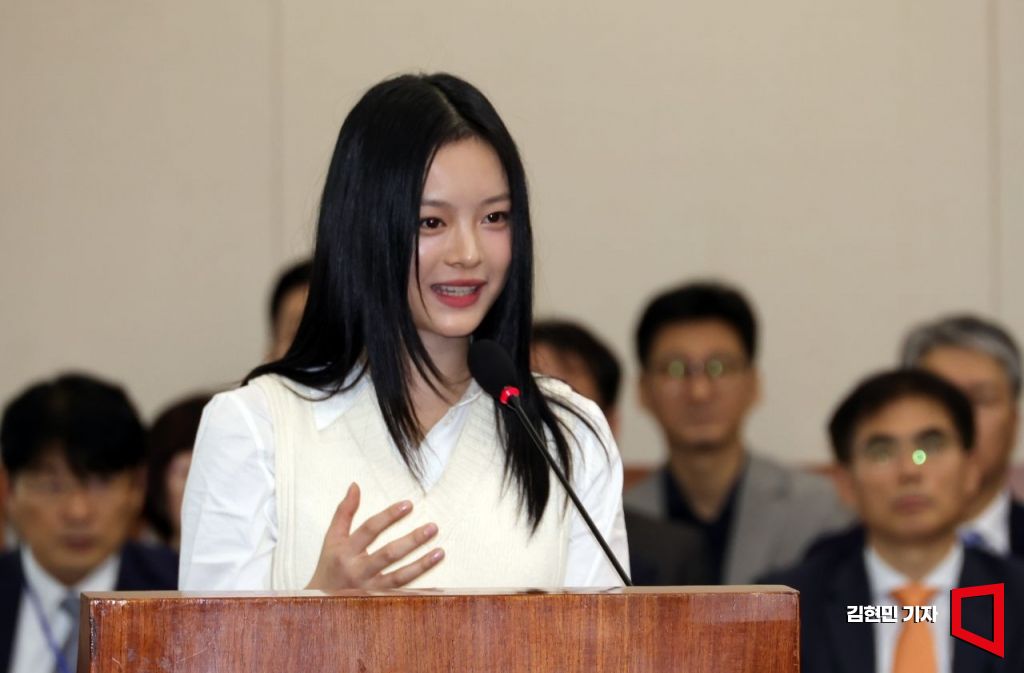 뉴진스 하니가 환경노동위원회 국정감사에 참고인으로 출석해 발언하고 있다.