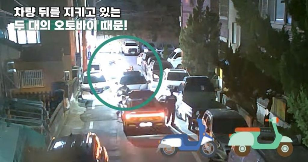 골목길로 도주한 차량 뒤를 오토바이 2대가 막아서고 있다. 경찰청 유튜브