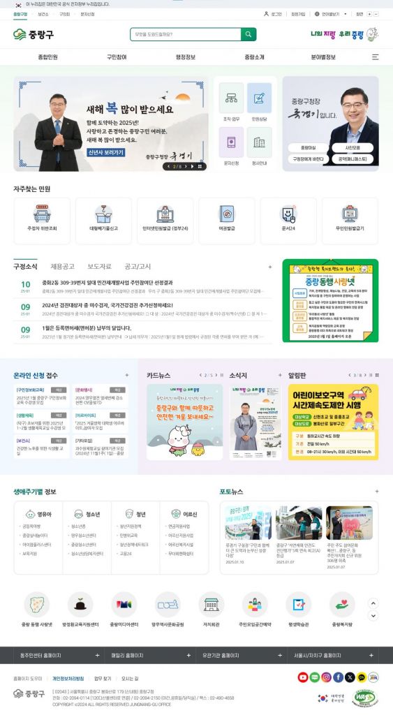 지난해 7월 메인화면 개편 이후 중랑구 누리집(홈페이지)은 주요 민원 서비스를 한눈에 확인할 수 있도록 구성, 사용자 편의를 고려해 자주 이용하는 서비스들을 누리집 상단에 배치했다.