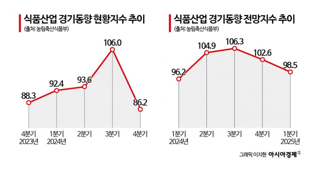 역대급 내수부진 한파에 지난해 4분기 식품업계 체감경기가 크게 나빠진 것으로 나타났다. 지속적인 고물가와 경기침체로 내수부진이 악화된 데다, 계엄 사태와 탄핵 정국 등 정치적 불확실성까지 더해지면서 올해 1분기도 전 분기보다 악화할 전망이다.