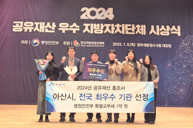 충남 아산시는 행정안전부 주관 '2024년 공유재산 총조사'에서 전국 최우수 기관으로 선정돼 특별교부세 1억 원을 확보했다고 13일 밝혔다.