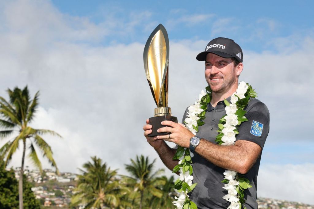 닉 테일러가 소니 오픈 우승 직후 트로피를 들고 환하게 웃고 있다. 하와이=AFP·연합뉴스
