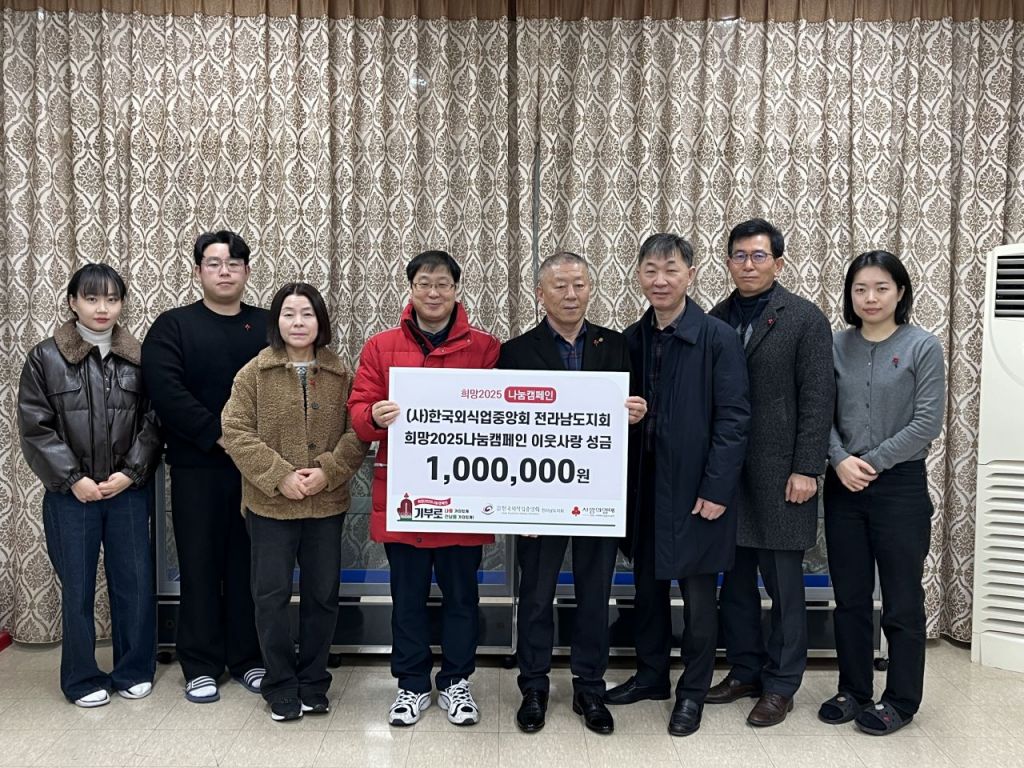 ㈔한국외식업 중앙회 전남도지회가 전남사회복지공동모금회(회장 노동일)에 희망2025나눔캠페인 이웃사랑성금 100만원을 전달했다. 전남사회복지공동모금회 제공