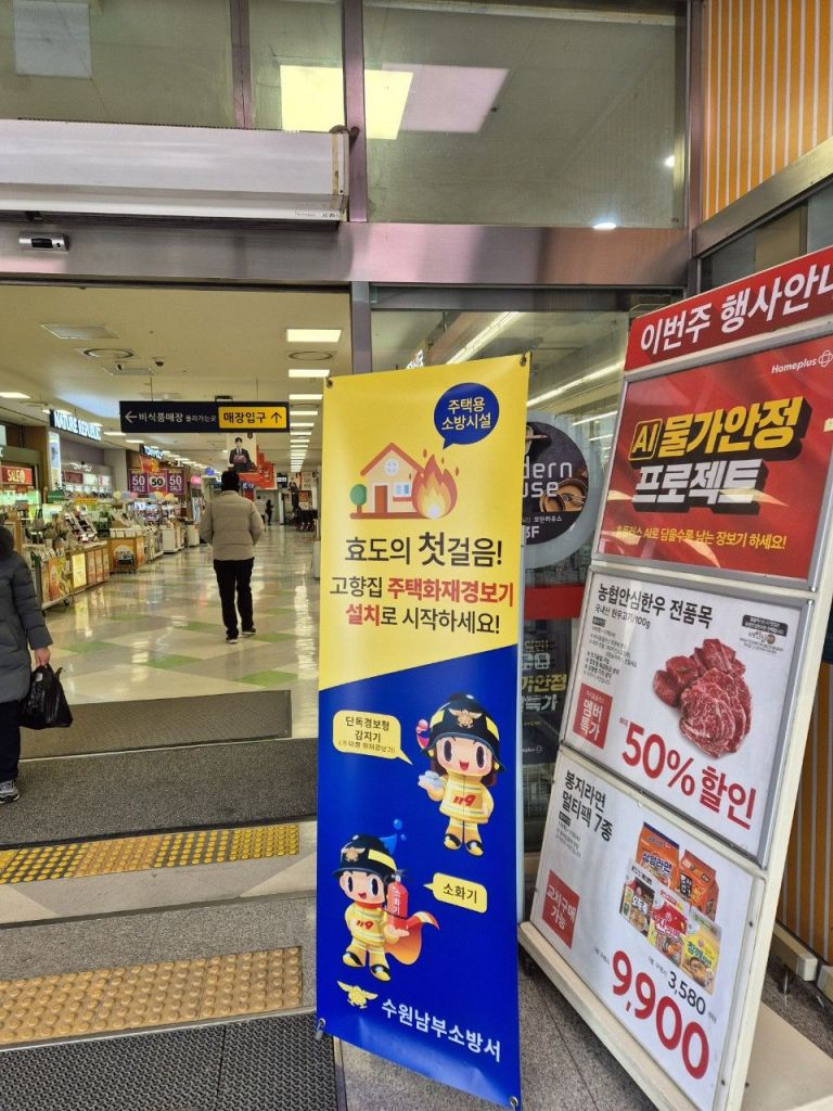 판매시설 내 소방요품 판매 홍보문구. 수원남부소방서 제공