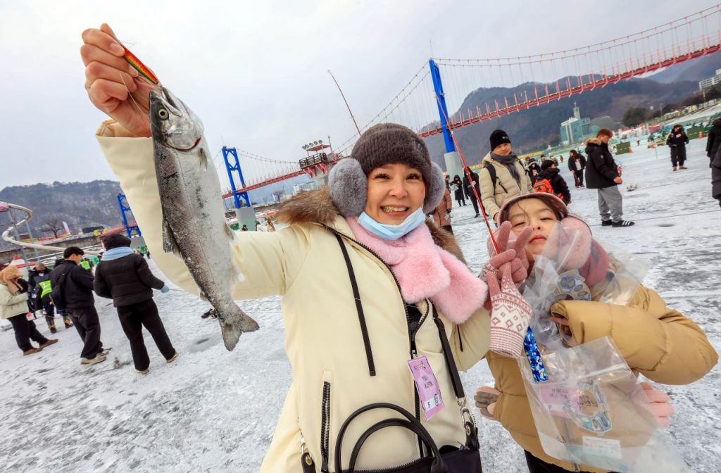 지난 11일 개막한 ‘2025 화천산천어축제’에 첫 주말 이틀 동안 타이완과 태국, 말레이시아, 싱가폴, 베트남 등 겨울이 없는 동남아시아 국가를 비롯한 세계 각국의 외국인 관광객 1만명 이상이 방문했다. 사진은 동남아시아 관광객이 화천산천어축제를 즐기고 있는 모습. 사진=화천군청 제공