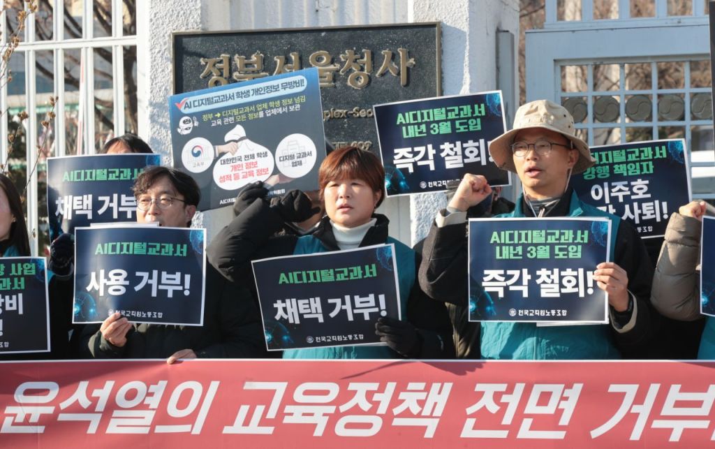 14일 전국교직원노조는 정부서울청사 앞에서 기자회견을 열고 AI 디지털교과서를 교육자료로 규정한 초·중등교육법을 즉각 공포할 것을 교육부에 촉구했다. 전교조는 "AI 디지털교과서의 문제점이 드러나고 있음에도 이에 대한 숙고 없이 강행처리를 한다면 교육부가 주장하는 맞춤형 교육이 아닌 획일적, 강제적 학습으로 귀결될 가능성이 크다"고 했다.