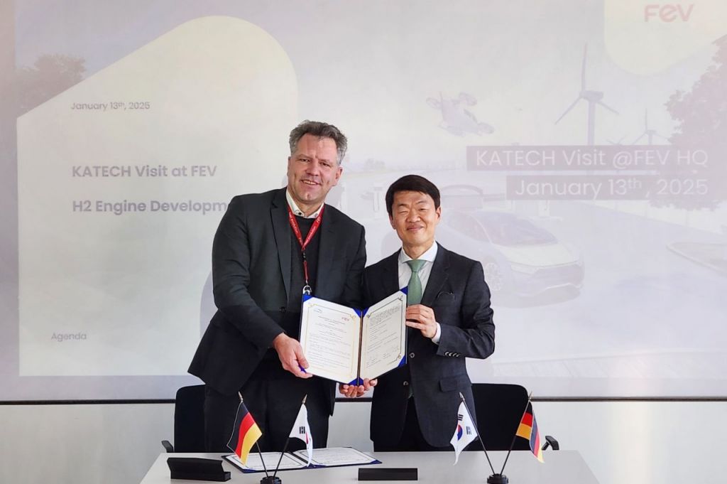 한국자동차연구원은 독일 자동차 엔지니어링 기업 FEV그룹과 수소 엔진 시스템을 함께 연구하는 업무협약(MOU)을 맺었다고 14일 밝혔다.