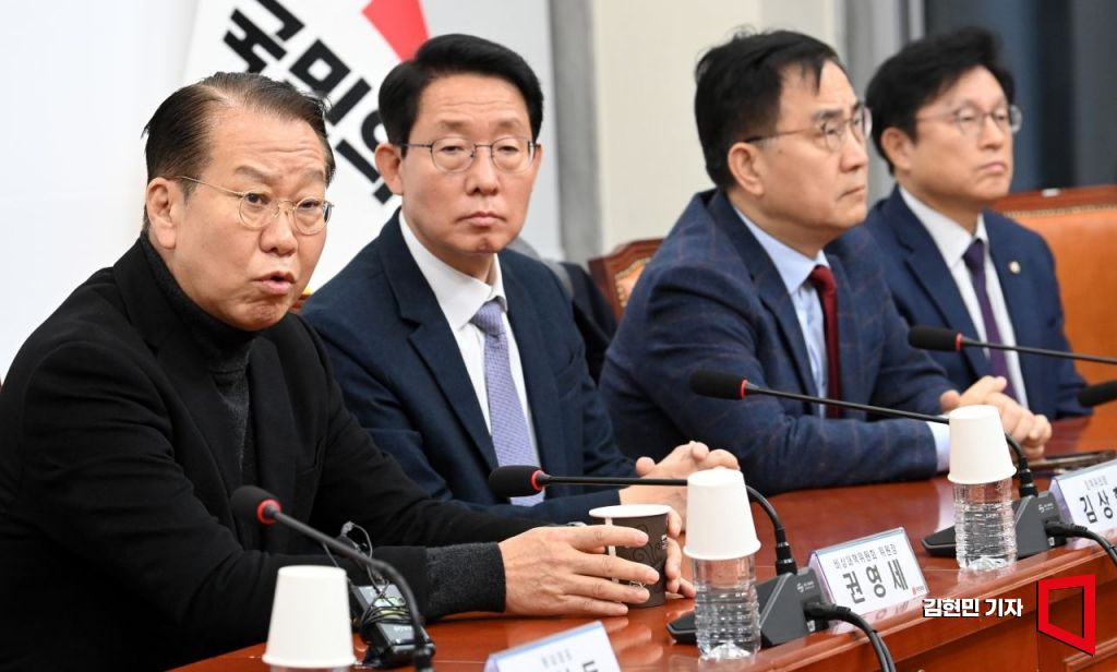 윤석열 대통령에 대한 2차 체포영장 집행이 시작된 15일 새벽 권영세 국민의힘 비상대책위원장이 국회에서 열린 긴급 비상대책위원회의에서 발언하고 있다.