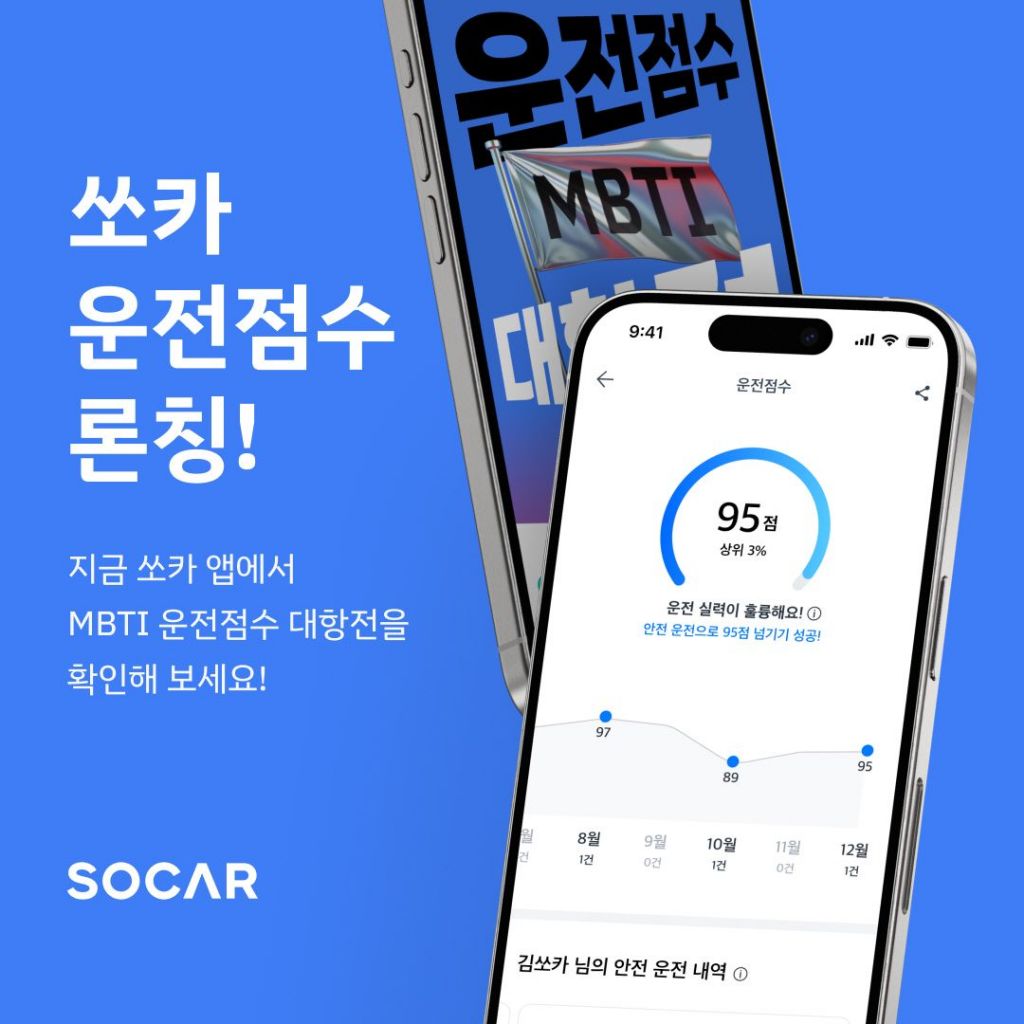 한편, 쏘카는 운전점수 서비스 출시를 기념해 'MBTI 운전점수 대항전' 이벤트를 진행한다. 회원들은 각자의 MBTI에 따라 16개 팀으로 이벤트에 참여하게 된다. 다음 달 16일까지의 이용 건에 대한 팀별 평균 운전점수를 집계한다. 가장 높은 평균 운전점수를 기록한 팀과 참여율이 가장 높은 팀에게는 각각 2500만 크레딧을 각 팀의 참여 인원수에 따라 분할 지급한다.