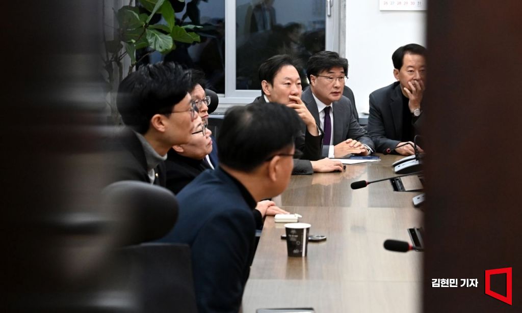 윤석열 대통령에 대한 2차 체포영장 집행이 시작된 15일 새벽 국회에서 국민의힘 지도부가 비공개회의를 하고 있다. 김현민 기자