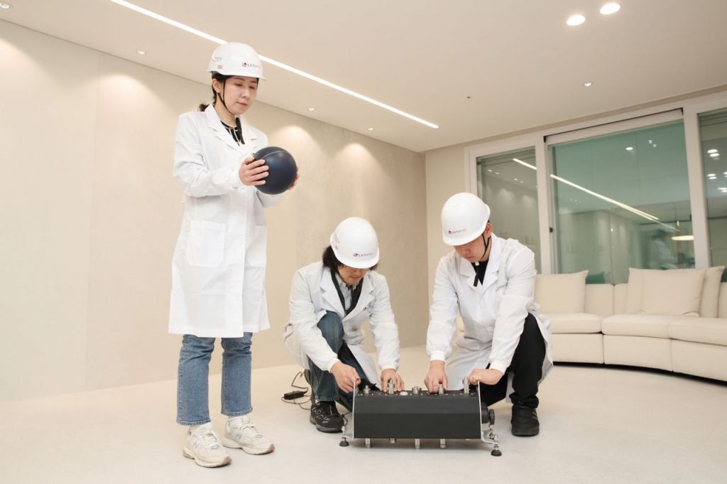 서울 마곡에 위치한 LX하우시스 연구소에서 연구원들이 바닥충격음 테스트를 진행하고 있는 모습. LX하우시스 제공