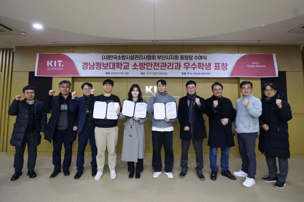 경남정보대는 13일 소방안전관리과 학생들을 대상으로 한국소방시설관리사협회 부산지회장 표창장 수여식을 진행했다. 경남정보대 제공
