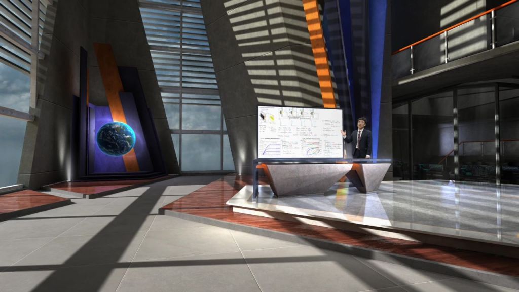 영남대 스마트교육센터에서 가상현실 기술을 활용한 XR스튜디오에서 시연하는 모습.