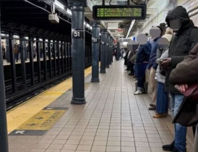 한 뉴욕 시민이 SNS에 게재한 사진. 범죄 피해를 우려한 시민들이 평소처럼 선로 근처가 아닌 벽에 밀착해 서있는 모습. 엑스(X) 갈무리