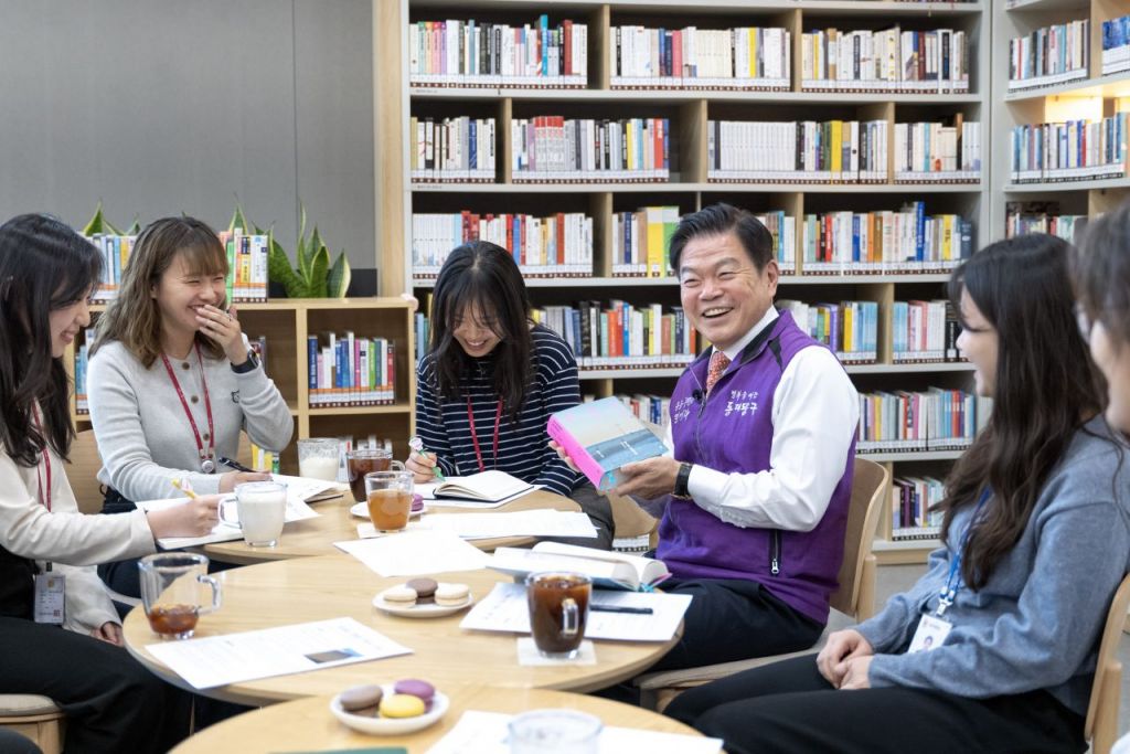 아울러 ‘직원과의 독서토론회’도 수시 진행한다. 구청장과 직원들이 책 한권을 정해 읽은 후 책 내용에 대해 다양한 의견을 교환하는 시간을 통해 문해력을 높이고 인문학 소양을 갖춰 더 좋은 행정서비스를 구민에게 제공하겠다는 생각이다.