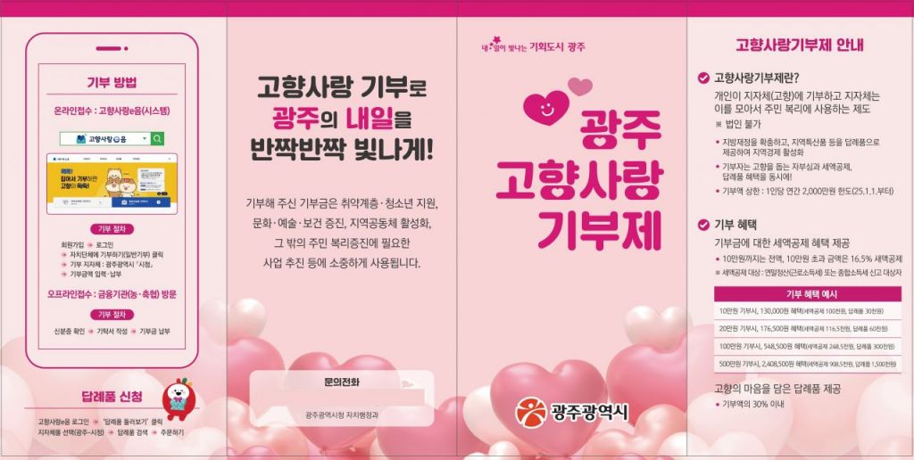 박윤원 자치행정과장은 “광주를 마음의 고향으로 여기고 고향사랑기부에 참여해준 분들께 감사드린다”며 “올해도 더 많은 분들이 기부에 참여할 수 있도록 다양한 답례품과 의미 있는 사업을 준비하겠다”고 말했다.