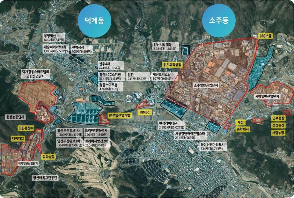 양산시는 국가산단이 존재하지 않아 대기업 규모의 사업장이 11개에 불과하고, 부산과 울산 사이에 위치해 조선, 자동차 산업의 2, 3차 밴드 등 영세업체가 전체의 90%를 차지하는 실정이며, 급격한 산업도시화로 주거지역과 공업지역이 혼재돼 주민들의 건강문제 우려 등 지원사업을 통한 시설개선의 시급성이 인정되면서 선정됐다.