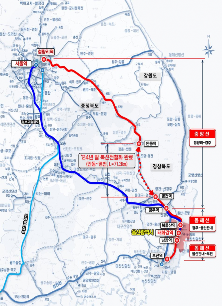 이와 함께 지난해 12월 개통된 태화강역 KTX-이음의 증편(왕복 3회→9회) 운행과 KTX-산천 정차를 위한 타당성 조사 용역을 추진하고 동해선 연장 운행을 위한 북울산역 환승 체계 개선사업(보행육교 등 환승시설 설치 등)을 오는 3월 중 완료하는 등 새로운 교통 시대를 열기 위한 노력도 지속해 나간다.