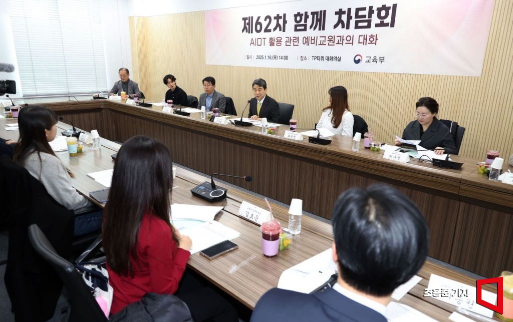 이주호 사회부총리 겸 교육부장관이 16일 서울 여의도 TP타워에서 열린 '함께 차담회' 인공지능(AI) 디지털 교과서 관련 예비교원들과 대화에서 발언을 하고 있다.