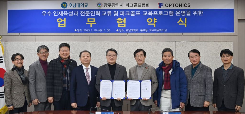 호남대학교(총장 박상철)는 16일 광주시파크골프협회(회장 이용범)와 파크골프의 대중화와 스포츠산업 발전을 위한 업무협약을 체결했다.