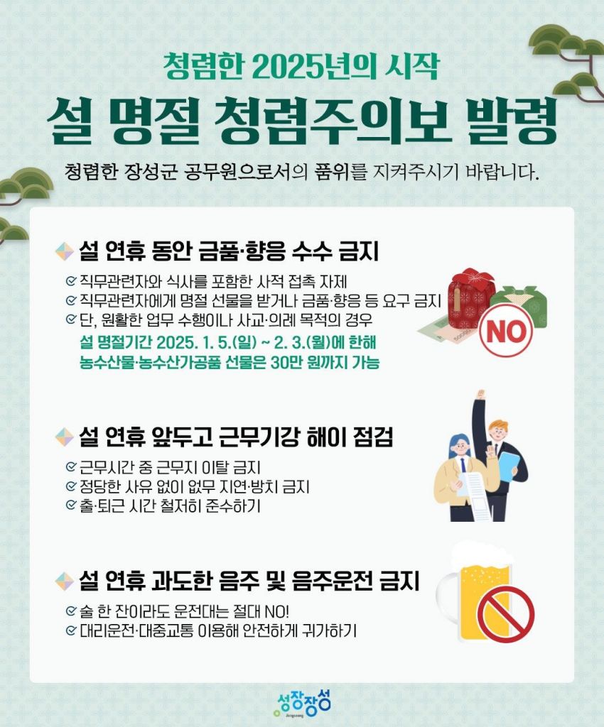 장성군 '설 명절 청렴주의보' 발령 안내문. 장성군 제공