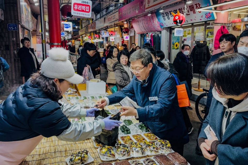 김 구청장은 떡, 과일, 전 등 설 상차림에 필요한 장을 보며 상인들의 이야기에 귀 기울여 현장의 목소리를 직접 듣는 시간을 가졌다.