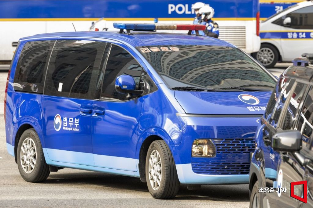 내란 수괴와 직권남용 등의 혐의를 받는 윤석열 대통령의 구속 전 피의자 심문(영장실질심사)이 열리는 18일 서울 마포구 서부지법에 윤 대통령이 탑승한 호송차량이 도착하고 있다.