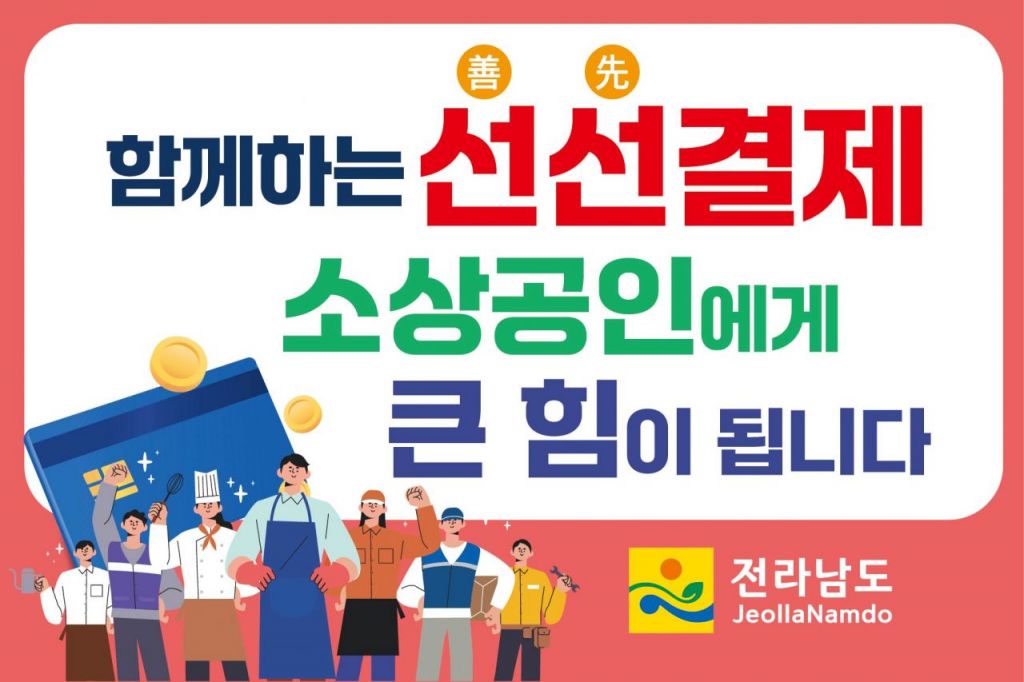 전라남도는 심각한 경영난을 겪는 소상공인 지원을 위해 올 상반기 ‘선선(善-先)결제 캠페인’ 을 벌인다고 밝혔다.