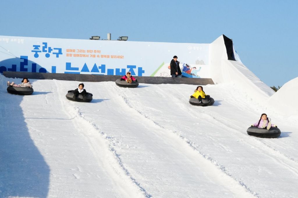 구는 겨울방학을 맞은 지역 어린이들을 위해 중랑천 둔치 중화체육공원에서 중랑구 어린이 눈썰매장을 운영 중이다. 운영 기간은 2월 9일까지며 매주 월요일과 설 연휴 기간(1월 28일과 29일)은 휴장한다.