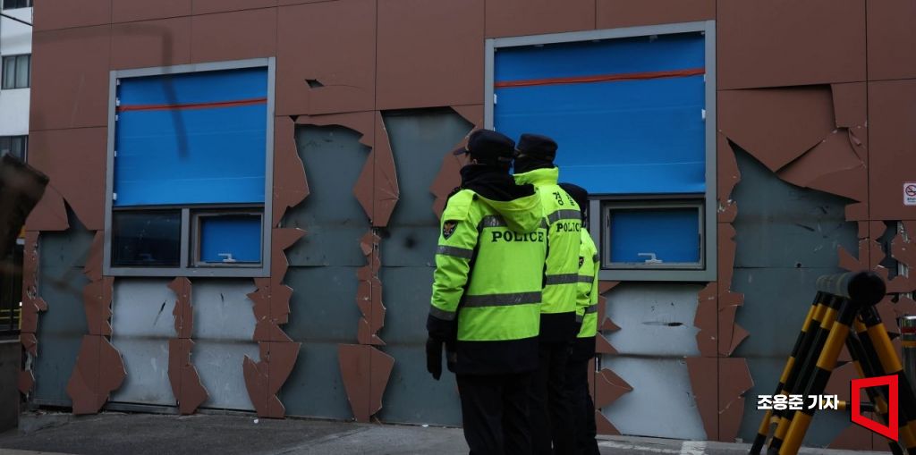 윤석열 대통령이 내란 우두머리 혐의로 구속되자 일부 지지자들이 서울서부지방법원 내부로 난입해 불법폭력사태를 일으킨지 하루가 지난 20일 오전 서울 마포구 서부지법이 파손 된 흔적이 그대로 남아 있다. 조용준 기자