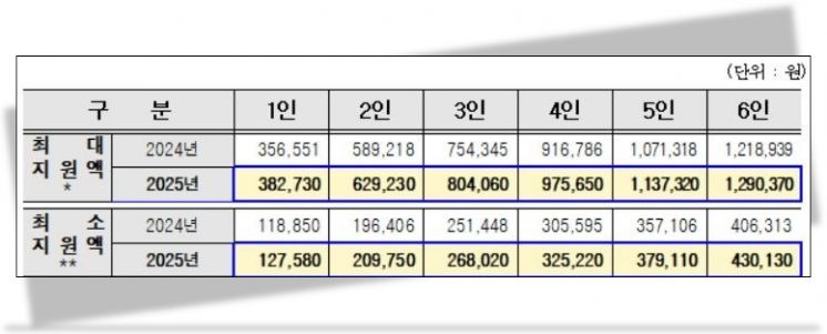 2025년 서울형 기초보장제도 지원금액. 서울시 제공