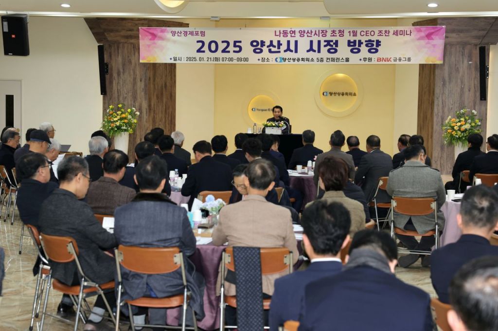 이번 세미나에서 나동연 양산시장은 2025년 새해 첫 강사로 초청돼 2024년 양산시 시정 성과와 2025년도 시정 운영방향과 기업지원시책에 대해 60여분간 강연했다.