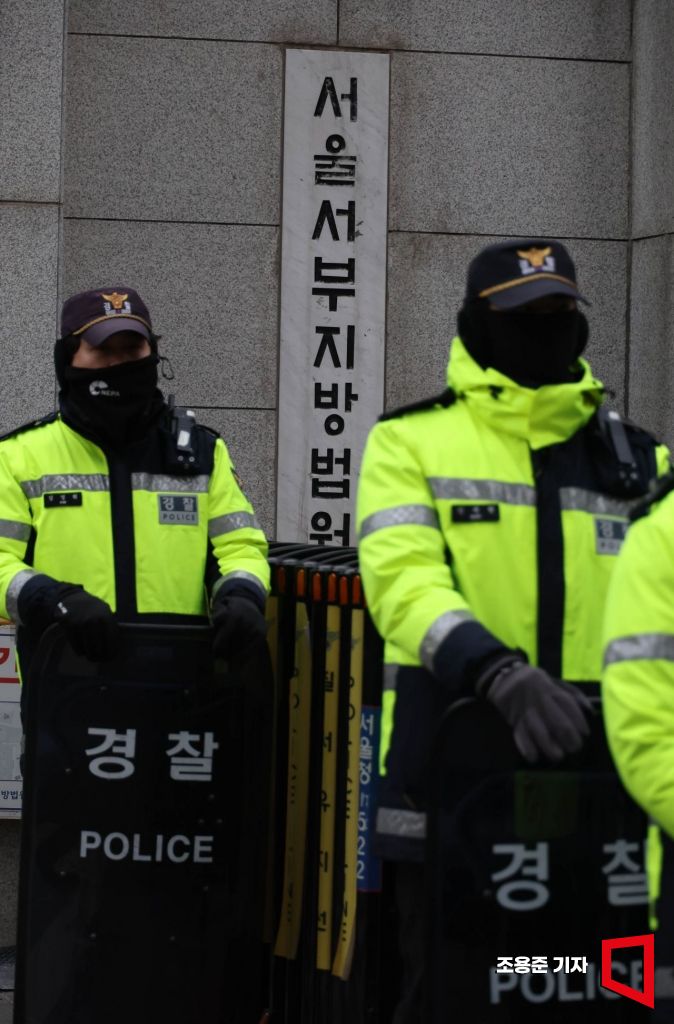 19일 윤석열 대통령 구속 소식을 들은 일부 지지자들이 불법폭력사태를 일으킨 가운데 20일 오전 서울 마포구 서울서부지방법원에 경찰들이 출입을 전면 통제 하고 있다. 조용준 기자