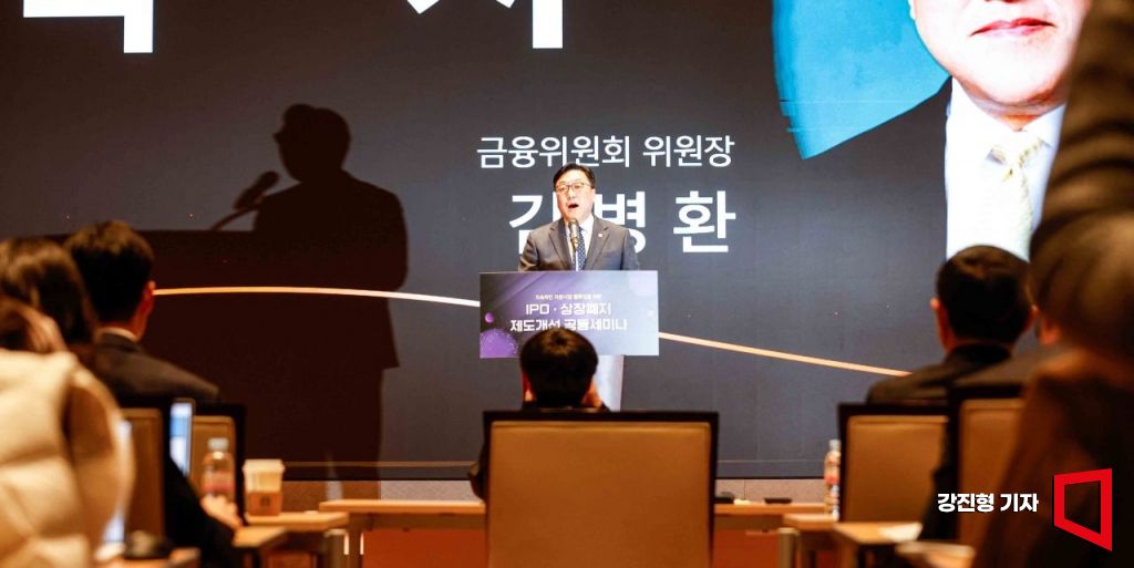 김병환 금융위원회 위원장이 21일 서울 여의도 한국거래소에서 열린 'IPO·상장폐지 제도개선 공동세미나'에 참석해 축사하고 있다.