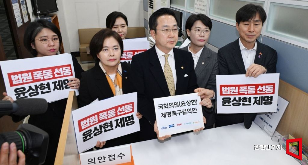 21일 오후 야 5당(더불어민주당·조국혁신당·진보당·사회민주당·기본소득당)은 국회 의안과에 윤 의원에 대한 제명 촉구 결의안을 제출했다. 이들은 결의안에 "국회의원으로서의 품위와 명예·권위를 회복하고 대한민국의 불행한 역사를 되풀이하지 않기 위해 윤 의원 제명을 강력히 촉구한다"고 명시했다.