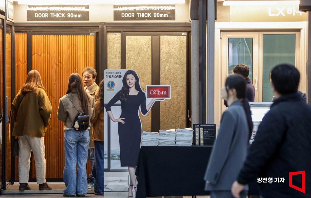 [포토] 단열 현관문 보는 관람객들