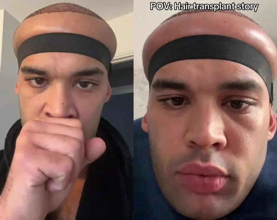 모발 이식 후 머리가 부풀어 오르는 부작용을 겪는 남성의 사연이 전해졌다.