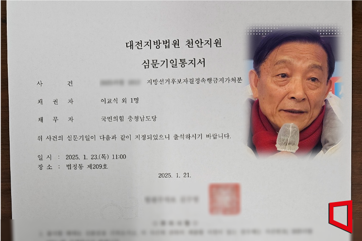 오는 4월 2일 치러지는 재선거에 도전장을 던진 이 예비후보는 지난 20일 대전지법 천안지원에 국민의힘 충남도당을 상대로 소를 제기했다.