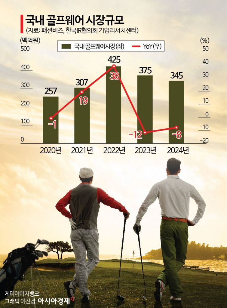 그 결과 2022년 4조2500억원에 달하는 골프웨어 시장은 이듬해 3조7500억원으로 10% 넘게 감소한 데 이어 지난해에는 3조4500억원으로 쪼그라든 것으로 추정된다.