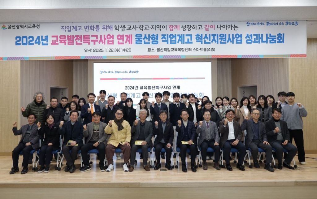 울산교육청은 22일 울산 직업교육복합센터에서 직업계고 11개교 교장, 담당 교사 등 40여명이 참석한 가운데 ‘2024년 교육발전특구사업 연계 울산형 직업계고 혁신지원사업 성과나눔회’를 열었다.