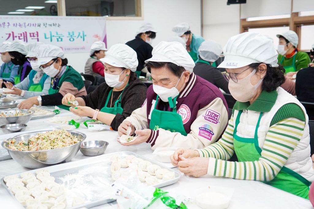 이필형 동대문구청장도 자원봉사센터를 찾아 힘을 보탰다. 자원봉사센터는 이 구청장과 봉사자들이 빚은 만두에 가래떡을 더해 주민센터에서 선정한 350세대에게 전달했다.