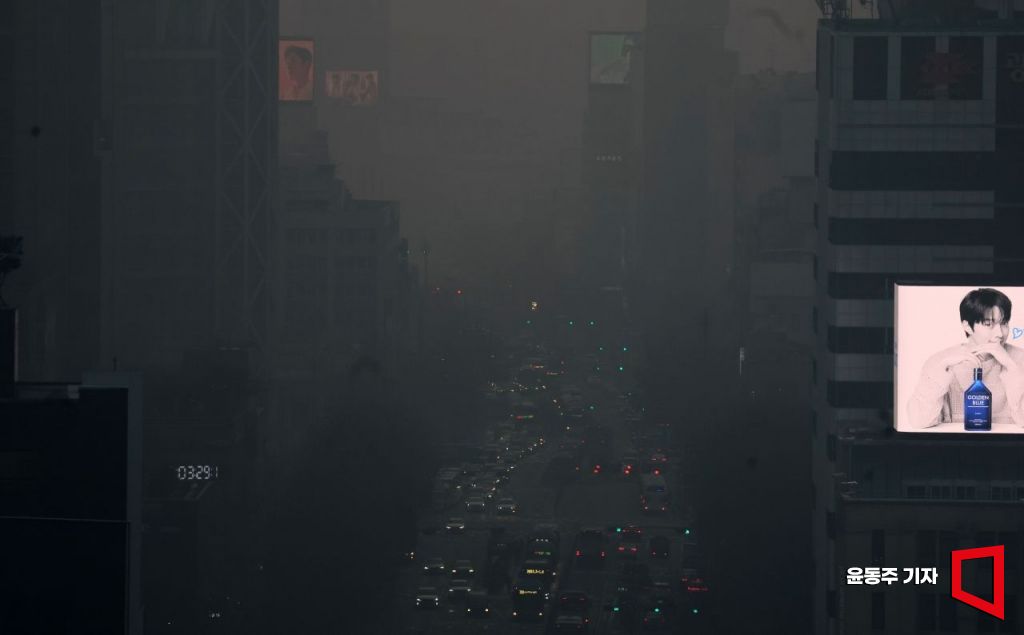 추위는 주춤하면서 전국의 미세먼지 농도 '나쁨'에서 '매우 나쁨' 수준까지 치솟은 21일 서울 도심이 뿌옇게 보이고 있다. 윤동주 기자