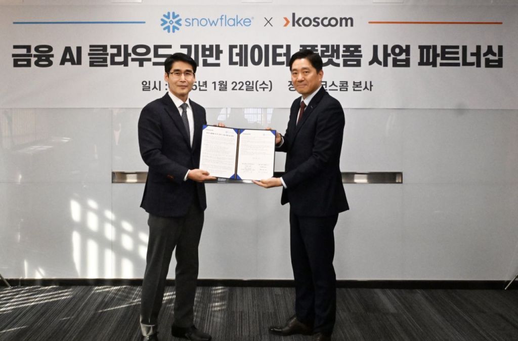 코스콤은 스노우플레이크 코리아와 ‘금융 클라우드 기반 데이터 플랫폼 및 AI 서비스 이용 확산을 위한 공동사업 파트너십’을 체결했다고 23일 밝혔다. 이번 파트너십을 통해 클라우드 기반 데이터 분석과 생성형 AI 서비스를 제공하고 금융기관들의 규제 리스크 없는 데이터 활용을 지원한다는 방침이다.