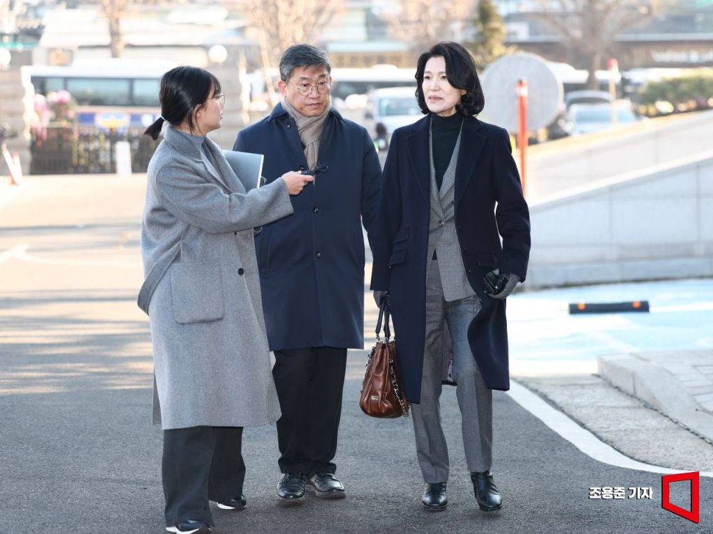 이진숙 방송통신위원장이 23일 오전 서울 종로구 헌법재판소에서 열리는 방통위원장 탄핵심판 청구 사건 선고에 참석하기 위해 대심판정으로 향하고 있다.