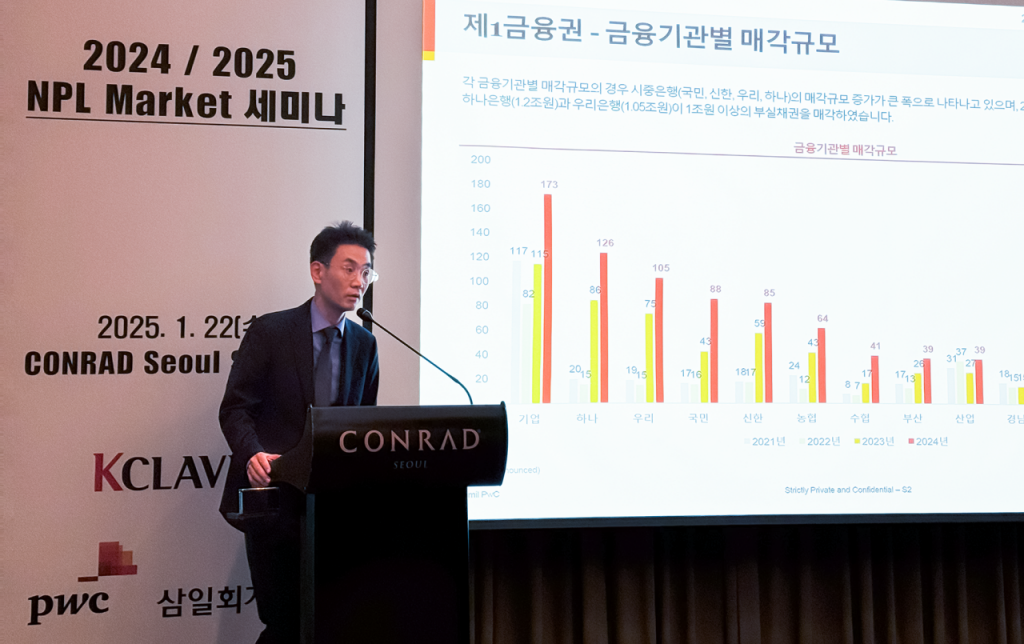 첫 번째 세션에선 명본호 삼일PwC NPL센터장이 NPL시장 동향을 주제로 발표했다. 그는 "지난해 급증한 매각 규모에도 불구하고 신규 투자자의 유의미한 시장 진입은 없었다"며 "상호금융권의 부실채권 매각을 정례화해 중장기적으로 NPL 투자자의 신규 진입을 유도하고 시장의 인수 여력을 확대해야 한다"고 밝혔다.
