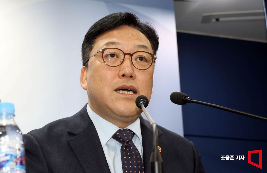 김병환 금융위원장이 22일 서울 종로구 정부서울청사에서 최근 현안에 대한 기자간담회에 참석해 발언하고 있다. 조용준 기자