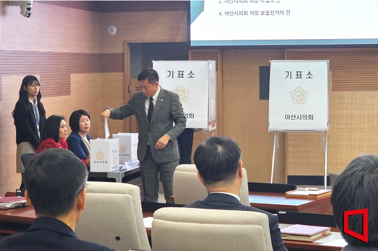 23일 열린 충남 아산시의회 홍성표 의장의 사임 투표가 부결됐다.
